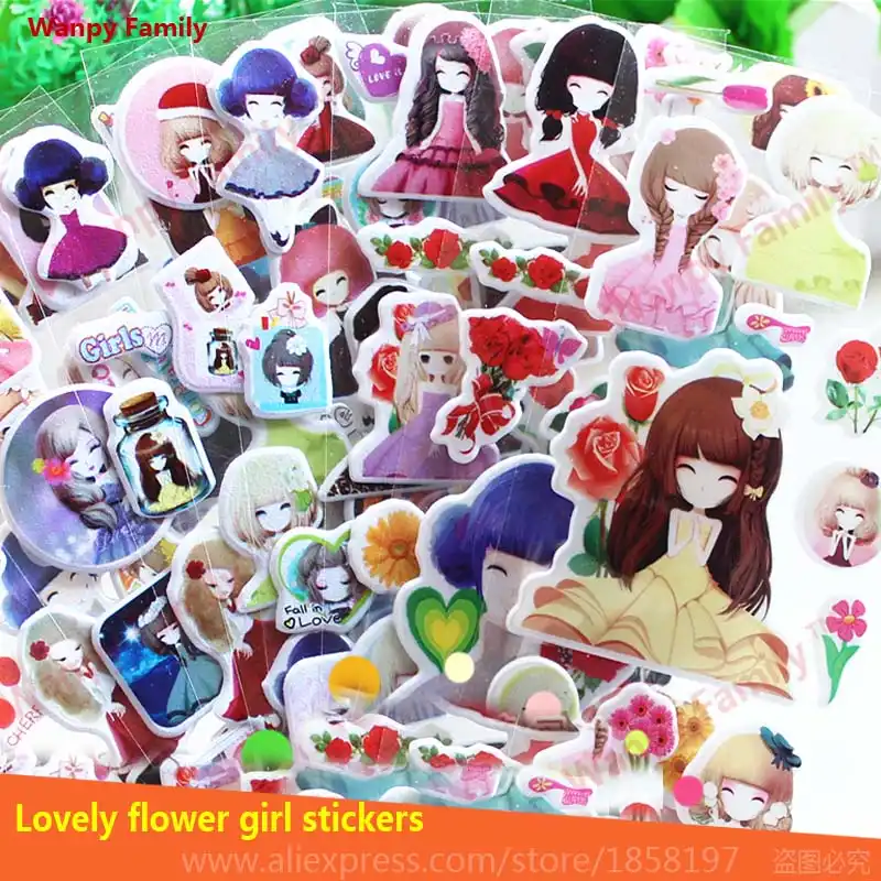 Cute girl cartoon toys stickers,Very beautiful Flower flower girl 3d mini stickers kids Classic toys DIY decor stickers|decorative stickers|flowers stickers 3dflower girl sticker - AliExpress